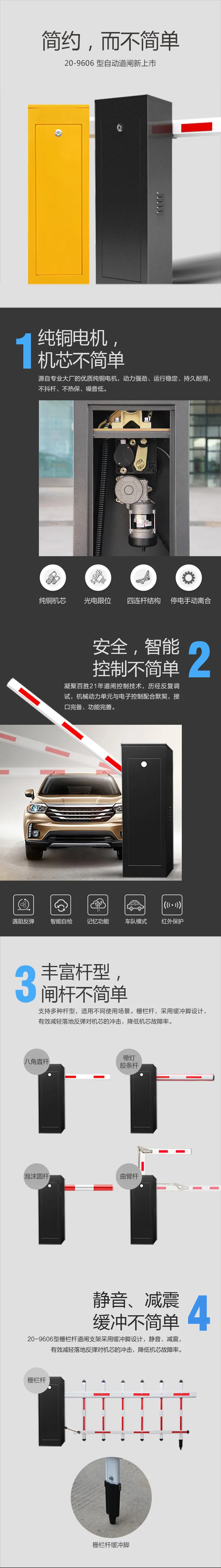 20-9606型道閘是一款主打性價比的爆款產(chǎn)品,設(shè)計簡約、外形低調(diào),符合大眾審美;