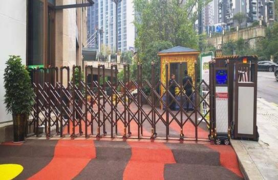 嘉興伸縮門門體采用優(yōu)質不銹鋼及鋁合金專用型材制作,采用平行四邊形原理鉸接,伸縮靈活行程大,給淮礦東方禾苑項目不一樣的體驗。