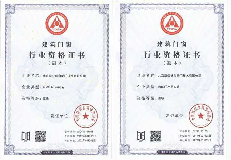 雙一級資質(zhì)是自動門電動門行業(yè)資質(zhì)標(biāo)準(zhǔn)的最高級別,是衡量企業(yè)整體實力的重要指標(biāo),對參評企業(yè)的人員素質(zhì)、制造能力、管理質(zhì)量、工程業(yè)績要求都極為嚴(yán)苛。但正是這舉步維艱的審核之路,恰恰證明了這一榮譽的彌足珍貴。