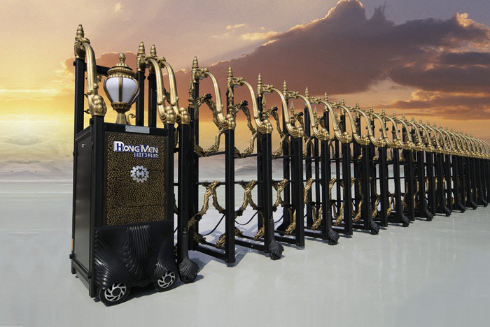 伸縮門就是門體可以伸縮自由移動,來控制門洞大小、來控制行人或車輛的攔截和放行的一種門。伸縮門主要由門體、驅(qū)動電機,滑道、控制系統(tǒng)構(gòu)成。門體采用優(yōu)質(zhì)不銹鋼及鋁合金專用型材制作,采用平行四邊形原理鉸接,伸縮靈活行程大。驅(qū)動器采用特種電機驅(qū)動,蝸桿蝸輪減速,并設(shè)有自動離合或手動離合器,自動離合停電時可自動啟閉,手動離合停電時可手動啟閉,控制系統(tǒng)有控制板,按鈕開關(guān),另可根據(jù)需求配備無線遙控裝置。