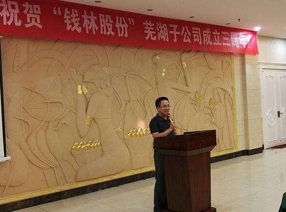 宴會(huì)伊始,北京南陵商會(huì)會(huì)長(zhǎng)萬(wàn)明先生對(duì)“錢(qián)林股份”蕪湖子公司成立三周年發(fā)表致辭,萬(wàn)會(huì)長(zhǎng)就蕪湖子公司在南陵的發(fā)展做出的重要貢獻(xiàn)給予肯定,并對(duì)于子公司未來(lái)的發(fā)展寄于厚望,希望蕪湖子公司能夠不忘初心,穩(wěn)扎穩(wěn)打,以更好的產(chǎn)品回饋社會(huì)。