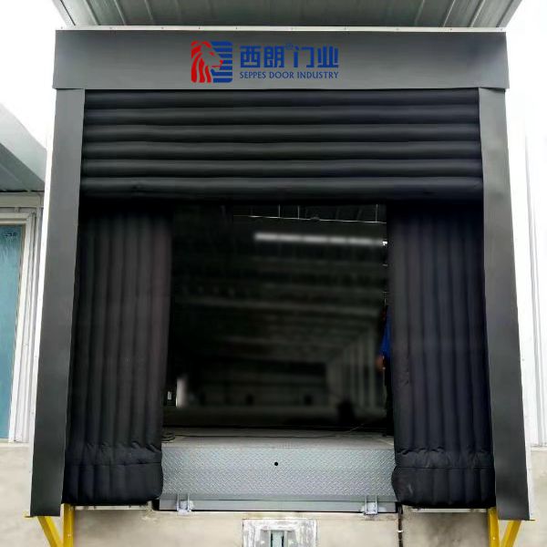 充氣式門封門罩外觀是四方形、黑色門簾,應(yīng)用于物流倉(cāng)庫(kù)大門外側(cè),它屬于電動(dòng)充氣密封;門封上方與兩側(cè)的氣囊,在鼓風(fēng)機(jī)進(jìn)行電動(dòng)吹鼓后,可完全與車廂四周進(jìn)行緊密貼合,保證在裝卸貨物的過程中,沒有蚊蟲、灰塵、熱氣進(jìn)入倉(cāng)庫(kù)、車廂內(nèi)部,以防污染內(nèi)部環(huán)境。