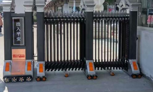 石家莊電動(dòng)伸縮門(mén)的驅(qū)動(dòng)器采用特種電機(jī)驅(qū)動(dòng),蝸桿蝸輪減速,并配有手動(dòng)離合器,停電時(shí)可手動(dòng)啟閉,電動(dòng)伸縮門(mén)的控制系統(tǒng)有控制板,按鈕開(kāi)關(guān),另可根據(jù)用戶需求配備無(wú)線遙控裝置。電動(dòng)伸縮門(mén)所采用的電機(jī)系特殊的專(zhuān)用渦輪蝸桿式電機(jī),因?yàn)槠鋫鲃?dòng)原理特殊性,穩(wěn)定性高,輸出力矩大、噪音小,速度適中。門(mén)體整體為金屬結(jié)構(gòu),按材質(zhì)又分為不銹鋼門(mén)體、鋁合金門(mén)體、壓鑄鋁門(mén)體。2、機(jī)頭:由驅(qū)動(dòng)器和電氣部分組成,它固定在門(mén)體的一端,帶動(dòng)門(mén)體伸縮運(yùn)動(dòng),與門(mén)體配套使用。驅(qū)動(dòng)器分普通型和機(jī)器人型。3、控制器:由控制盒、臺(tái)式控制器及手柄遙控器組成。1)、控制盒:固定在機(jī)頭內(nèi),由它接收控制器發(fā)出的指令控制門(mén)體的運(yùn)行。2)、臺(tái)式控制器:主要由值班人員在值班室內(nèi)使用。3)、手柄遙控器:主要配備車(chē)輛使用,可在機(jī)頭周?chē)?0-30米內(nèi)(根據(jù)現(xiàn)場(chǎng)的無(wú)線電通訊環(huán)境而定)活動(dòng)控制大門(mén)的開(kāi)、關(guān)。