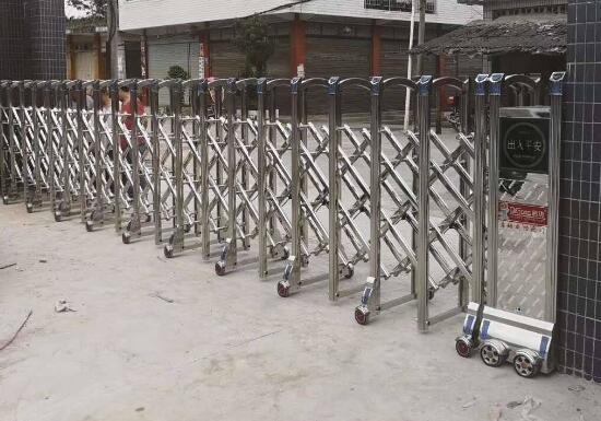 紹興伸縮門門體采用優(yōu)質(zhì)不銹鋼及鋁合金專用型材制作,采用平行四邊形原理鉸接,伸縮靈活行程大,給峰澤景園項(xiàng)目不一樣的體驗(yàn)。