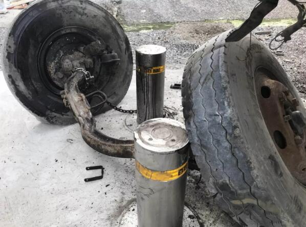 經(jīng)過(guò)猛烈碰撞后,百勝BS602升降地柱外觀無(wú)明顯變形,且能正常升降,表現(xiàn)優(yōu)異!