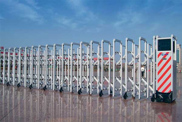 銅陵出安智能伸縮門(mén)就是門(mén)體可以伸縮自由移動(dòng),來(lái)控制門(mén)洞大小、來(lái)控制行人或車(chē)輛的攔截和放行的一種門(mén)。伸縮門(mén)主要由門(mén)體、驅(qū)動(dòng)電機(jī),滑道、控制系統(tǒng)構(gòu)成。門(mén)體采用優(yōu)質(zhì)不銹鋼及鋁合金專(zhuān)用型材制作,采用平行四邊形原理鉸接,伸縮靈活行程大。驅(qū)動(dòng)器采用特種電機(jī)驅(qū)動(dòng),蝸桿蝸輪減速,并設(shè)有自動(dòng)離合或手動(dòng)離合器,自動(dòng)離合停電時(shí)可自動(dòng)啟閉,手動(dòng)離合停電時(shí)可手動(dòng)啟閉,控制系統(tǒng)有控制板,按鈕開(kāi)關(guān),另可根據(jù)需求配備無(wú)線(xiàn)遙控裝置。