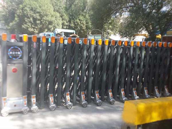 1、伸縮門體:伸縮門體是由門體大框、交叉撐、軸(定軸、滑軸)及門體輪等主要部件組成。門體整體為金屬結(jié)構(gòu),按材質(zhì)又分為不銹鋼門體、鋁合金門體、壓鑄鋁門體。