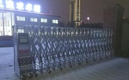 溫州伸縮門門體采用優(yōu)質(zhì)不銹鋼及鋁合金專用型材制作,采用平行四邊形原理鉸接,伸縮靈活行程大,成華鴻陽光城·翡麗公園大門口一道美景。