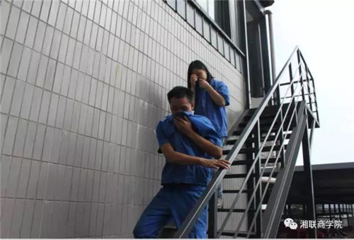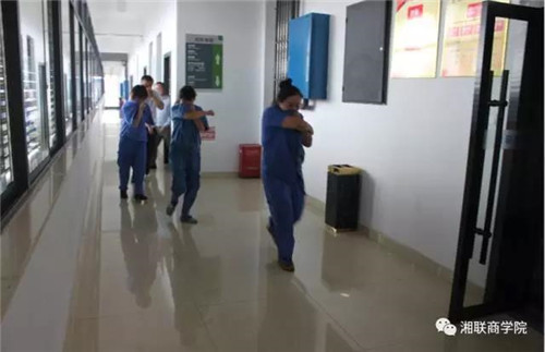 員工進行模擬疏散逃生演練,大家有序撤離火災現(xiàn)場。