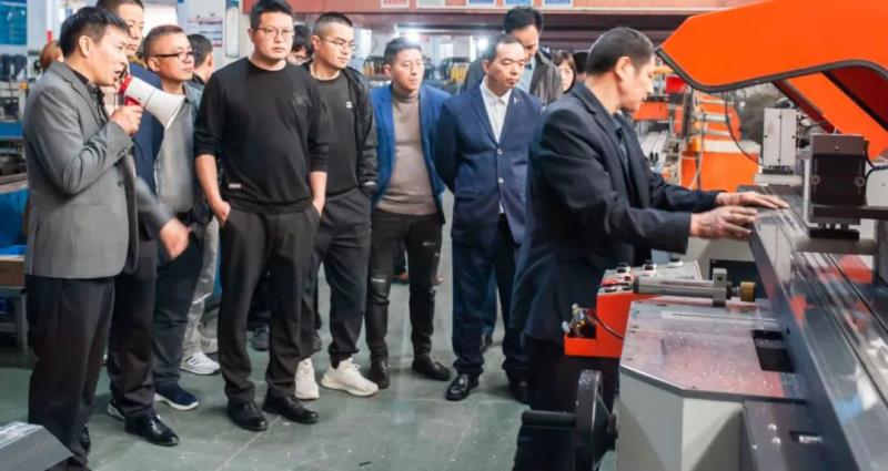 隨后,伙伴們參觀了鷹勝煌工業(yè)4.0自動化生產(chǎn)線,自動化激光切割等數(shù)字車間,共同探討生產(chǎn)環(huán)節(jié)的技術革新和細節(jié)要求。胡董現(xiàn)場為合作伙伴們講解智能化生產(chǎn)的各個要領和品質要求,為合作伙伴輸出鷹勝煌創(chuàng)新優(yōu)服,匠心德質的企業(yè)文化。