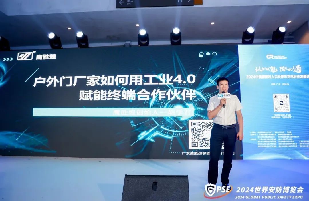 廣東鷹勝煌智能科技有限公司董事長(zhǎng)胡學(xué)君帶來(lái)《戶外門廠家如何用工業(yè)4.0賦能終端合作伙伴》主題分享。