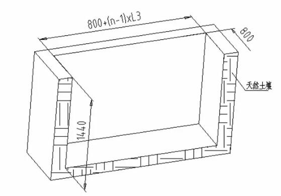 寬度800mm、深度為地基盒深度+400mm、長度為:800+(n-1)x L3,其中n為需要安裝地柱數(shù)量,L3為地柱間距。