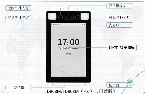 中控智慧TDB08人臉識別終端除了配備強大的定制AI CPU和最新AI深度自主學習面部識別算法,還內(nèi)置超低照度寬動態(tài)雙目攝像頭,采用多光譜活體防偽技術(shù),雙目光電硬件+活體識別算法,對打印的高清人臉照片、人臉圖像視頻以及各種材料面具的攻擊,具有很強的防偽能力。