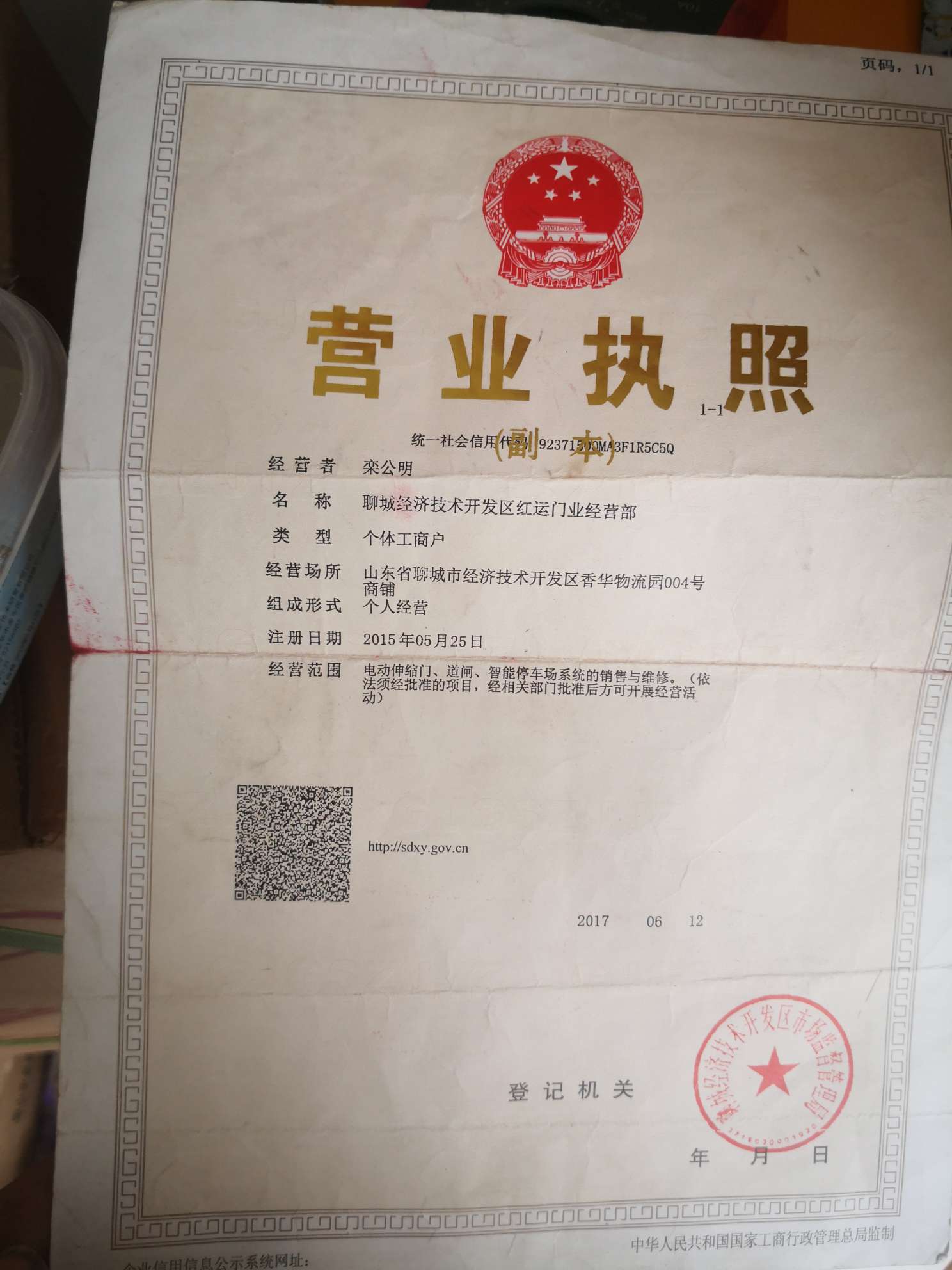 聊城經(jīng)濟技術(shù)開發(fā)區(qū)紅運門業(yè)經(jīng)營部成立于2015年05月25日,注冊地位于山東省聊城市經(jīng)濟技術(shù)開發(fā)區(qū)香華物流園004號商鋪,法人代表為欒公明。經(jīng)營范圍包括電動伸縮門、道閘、智能停車場系統(tǒng)的銷售與維修。