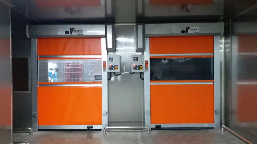 安全裝置:道軌下方裝有紅外線感應(yīng)裝置,快速門卷簾布底部裝有安全氣囊保護(hù)