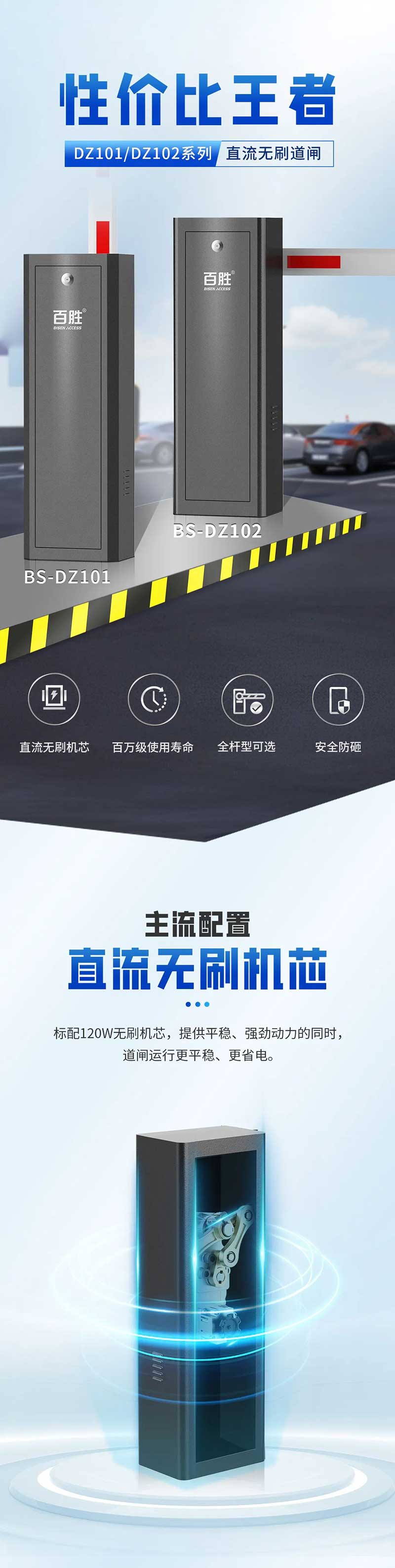 性價(jià)比王者百勝DZ101/DZ102系列直流無刷道閘