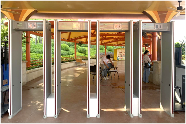 通過在景區(qū)入口配置金屬探測(cè)安檢門,可以有效的檢測(cè)出游客身上攜帶的金屬危險(xiǎn)違禁品,當(dāng)游客從安檢門通過時(shí),人身體上所攜帶的金屬超過根據(jù)重量、數(shù)量或形狀預(yù)先設(shè)定的參數(shù)值時(shí),安檢門即刻報(bào)警,并顯示造成報(bào)警的金屬所在的區(qū)位,讓安檢員及時(shí)發(fā)現(xiàn)游客隨身攜帶的金屬物品。在保障游客安全的前提下,確保游客快速入園。
