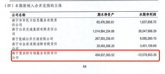 目前慧泊停車是南寧軌道交通集團的二級子公司,慧泊停車截至2022年底的凈資產為4.95億元,2022年凈利潤虧損1208萬元,但財報未解釋具體的虧損原因。