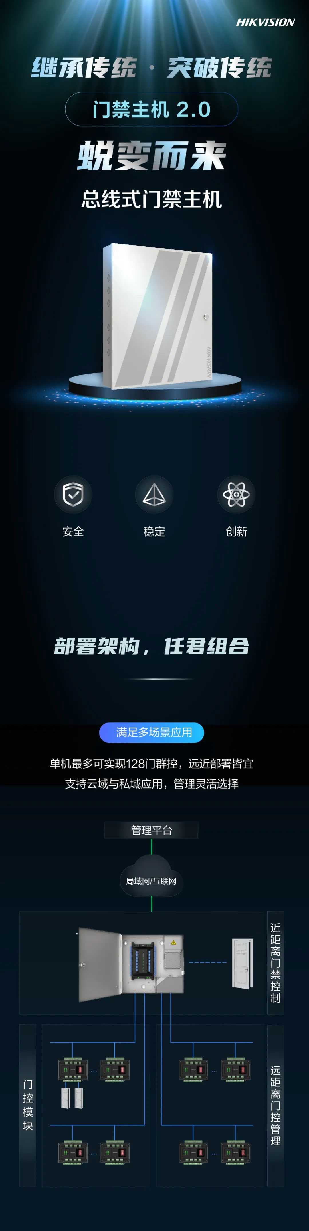 傳統(tǒng)的門禁控制器基本以單、雙、四門為主,針對(duì)多門的場(chǎng)景需投入更多主機(jī)資源,成本高,且安裝復(fù)雜。