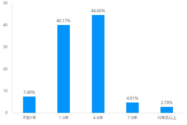 對(duì)于充電行業(yè),從業(yè)4-10年,雖然還無(wú)法稱(chēng)之為行業(yè)老兵,但相較于入行不到3年的新手小白來(lái)說(shuō),兩方數(shù)據(jù)占比幾乎不相上下。