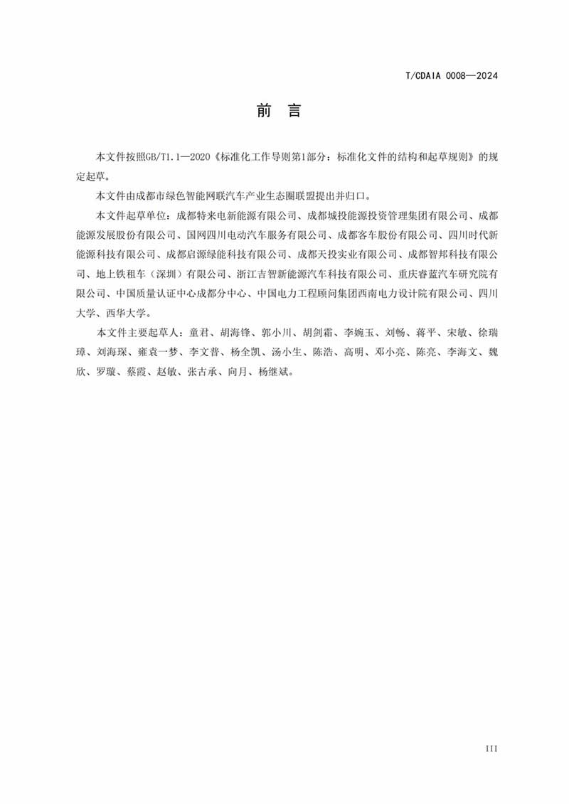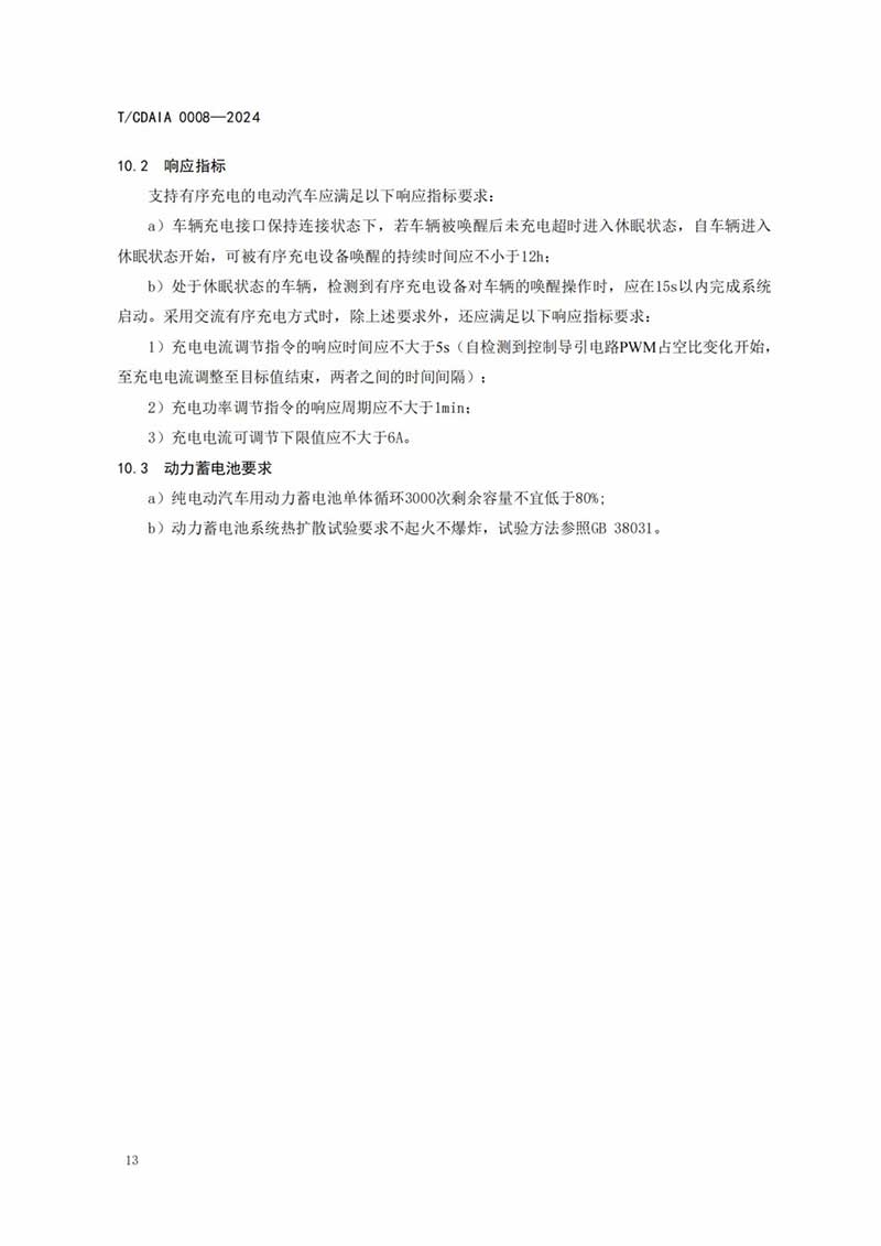 成都市綠色智能網(wǎng)聯(lián)汽車產(chǎn)業(yè)生態(tài)圈聯(lián)盟批準發(fā)布《電動汽車有序充電和V2G雙向互動技術(shù)規(guī)范》(T/CDAIA 0008—2024)團體標準(詳見附件),于2024年6月25日發(fā)布,2024年7月1日實施,現(xiàn)予以公告。