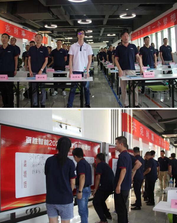 會(huì)議進(jìn)入營(yíng)銷(xiāo)動(dòng)員環(huán)節(jié),銷(xiāo)售、生產(chǎn)、開(kāi)發(fā)、品質(zhì)四大中心負(fù)責(zé)人、代表紛紛上臺(tái)對(duì)2020年度下半年工作目標(biāo)作出承諾,全體與會(huì)人員現(xiàn)場(chǎng)宣誓、簽名,勇立誓言,保證完成年度目標(biāo)任務(wù),共同踐行”承諾、誠(chéng)信、成功“的百勝文化。