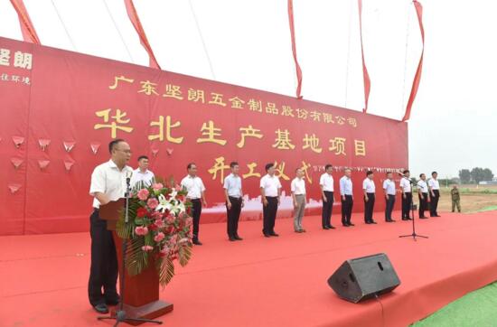 7月22日上午,廣東堅(jiān)朗五金制品股份有限公司華北生產(chǎn)基地項(xiàng)目奠基慶典儀式在衛(wèi)輝市后河專(zhuān)業(yè)園區(qū)堅(jiān)朗項(xiàng)目地塊舉行。