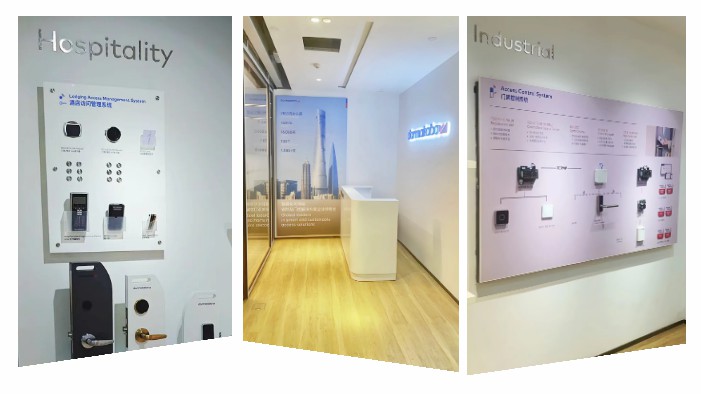 新辦公室不僅是日常運營的基地,也是展示多瑪凱拔綜合解決方案的窗口。這里整合展示了我們?yōu)樯虡I(yè)、工業(yè)、酒店和住宅等垂直市場提供的安防及門控解決方案,涵蓋門用五金、自動化出入口控制系統(tǒng)、智能鎖、門禁系統(tǒng)等品類,旨在為客戶提供安全、靈活且先進的產品組合和服務。