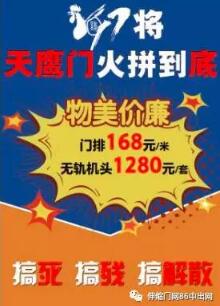 2017年7月8日,廣州電動(dòng)門窗展會(huì)上,有伸縮門企業(yè)不但標(biāo)出每米100多元的低價(jià),還喊出“搞死、搞殘、搞解散”的口號。