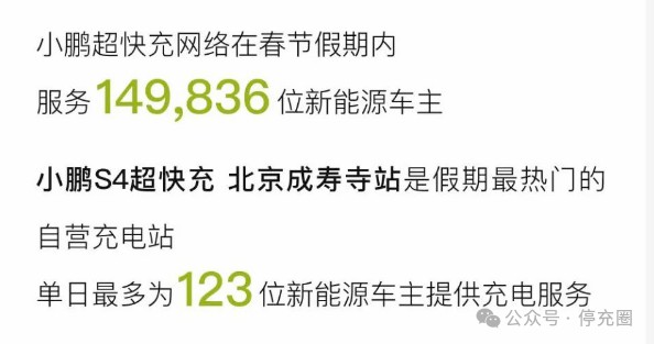 超快充網(wǎng)絡(luò)春節(jié)期間服務(wù)近15萬位新能源車主,有168座城市用戶體驗(yàn)小鵬超快充補(bǔ)能;