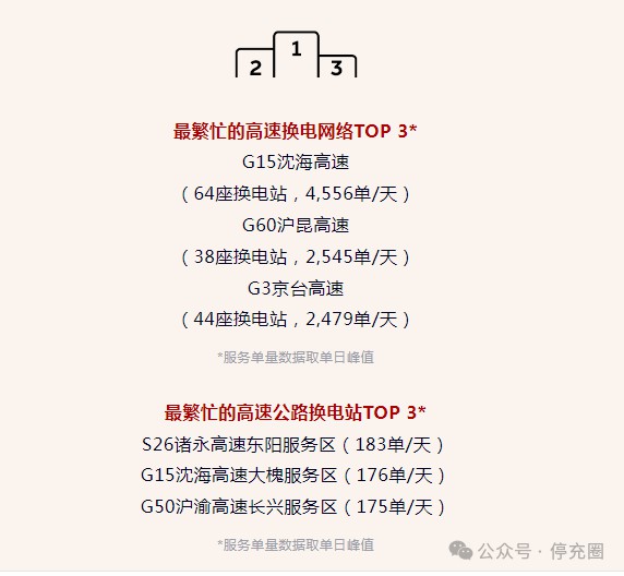 最繁忙的高速公路換電站TOP 3*