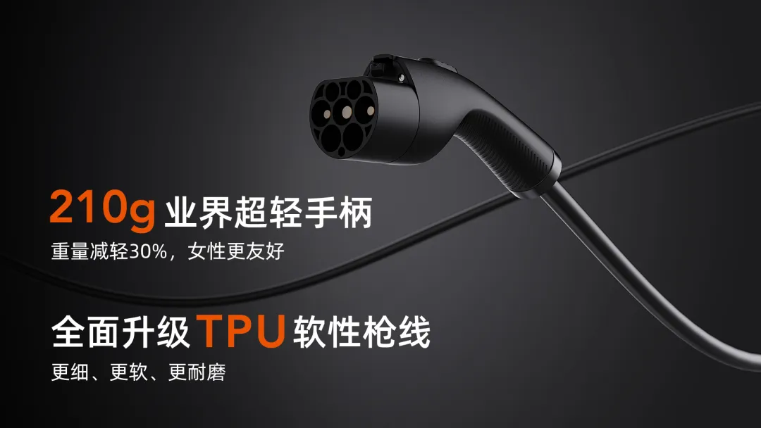 星際以人體工學理念開啟充電槍輕量化革命,手柄重量減輕30%,打造出210g業(yè)界超輕手柄。同時全面升級TPU軟性槍線,更細、更軟、更耐磨,讓充電操作升華為優(yōu)雅的科技儀式,女性用戶使用更友好哦~