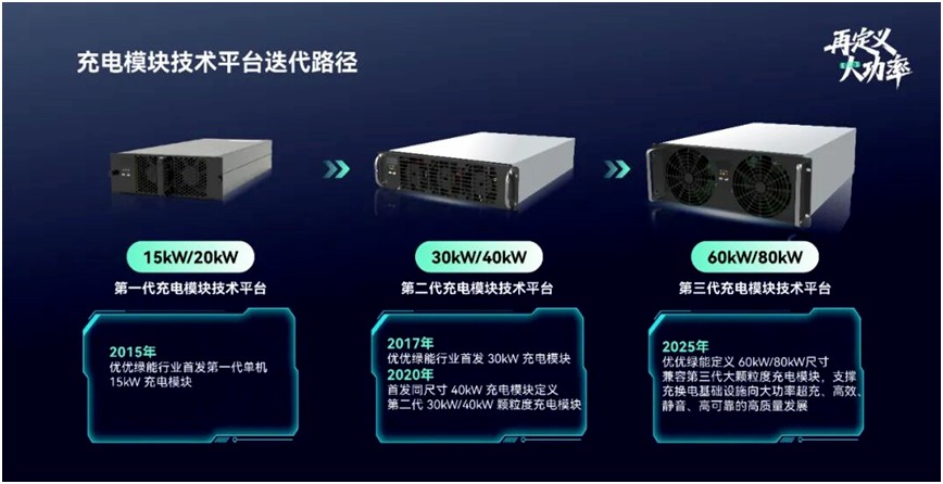 面對兆瓦超充的技術(shù)需求與挑戰(zhàn),優(yōu)優(yōu)綠能推出的第三代60kW/80kW超大功率充電模塊,基于核心自主產(chǎn)權(quán)充電技術(shù)研發(fā)平臺,以“超大功率、超高效率、超強兼容、高可靠性”為核心理念推動兆瓦超充基礎(chǔ)設(shè)施全面升級。