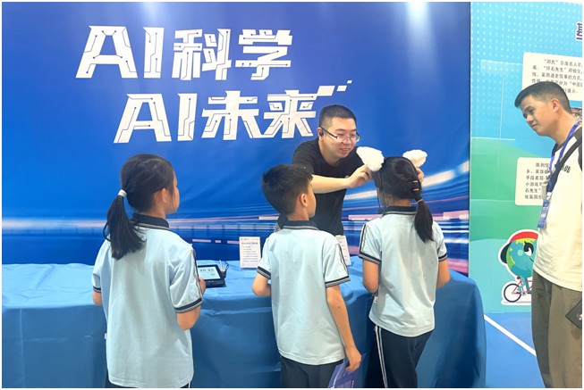 在腦機(jī)接口技術(shù)板塊,智能頭箍和腦電頭環(huán)備受關(guān)注,智能頭箍憑借可愛(ài)的貓耳發(fā)箍設(shè)計(jì)吸引了眾多中小學(xué)生駐足體驗(yàn)。學(xué)生佩戴輕便的腦電采集頭環(huán)后,只需集中注意力,即可親身感受大腦信號(hào)轉(zhuǎn)化為機(jī)器指令的科技魅力。不少學(xué)生在體驗(yàn)后興奮地表示,此次活動(dòng)讓自己真切感受到 AI 技術(shù)的趣味性與實(shí)用性,進(jìn)一步激發(fā)了對(duì)科技探索的興趣。