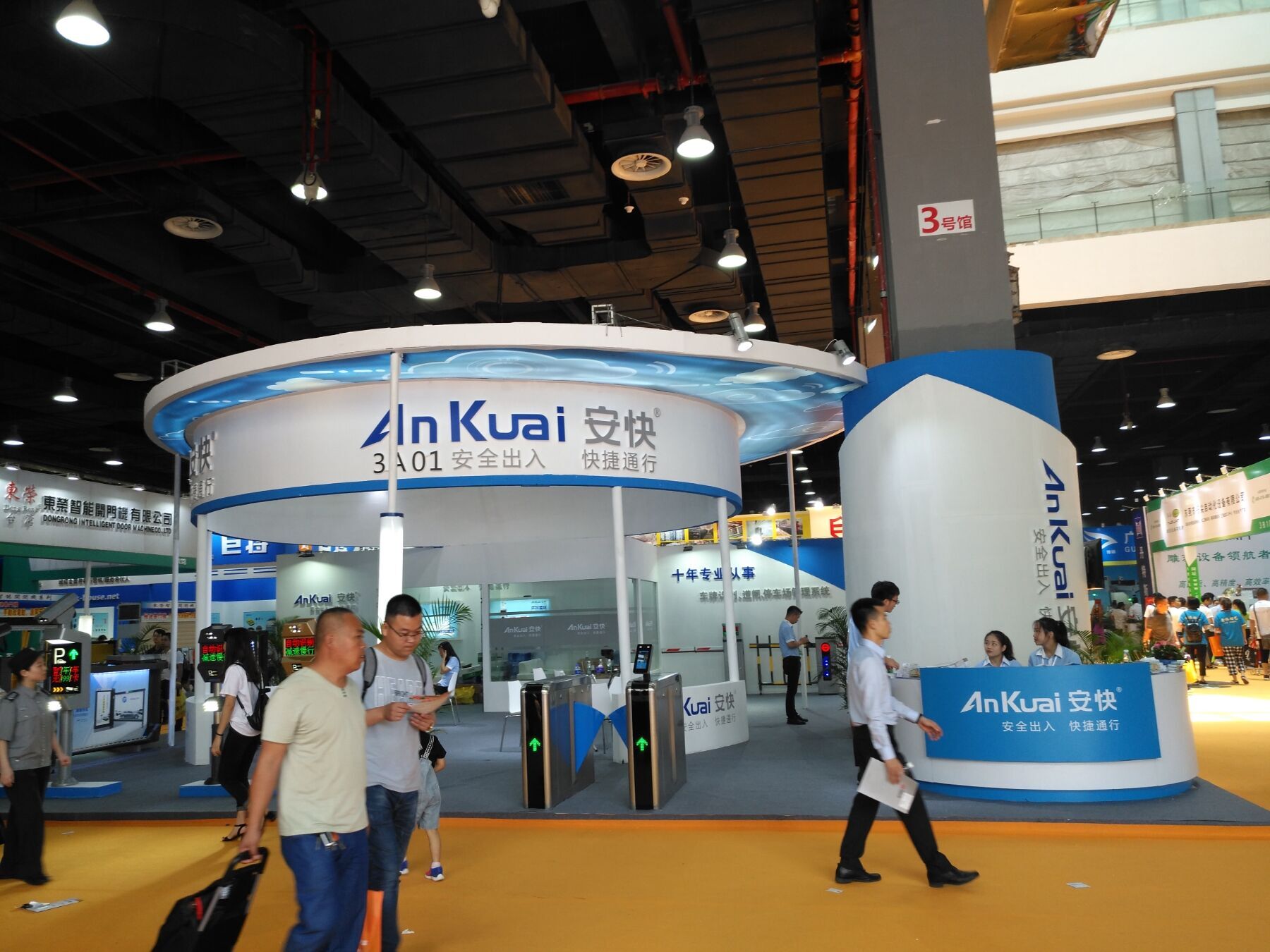萬家紅智能科技在展會中心一枝獨秀,奢華的鋁藝大門佇立展位正中,并出動專線車接待往來的客人,把這次展會營銷做到極致;廣東安快智能在出口顯眼處占地幾十平方,裝飾出安快獨特的品牌色彩,亮出最新P818車牌識別系列,以及廣告道閘系列,通道閘系列產品,參觀人群絡繹不絕,現場品鑒新品性能;先鋒電機展位人頭攢攢,工作人員應接不暇。更多的參展企業(yè)與各路買家洽談業(yè)務,觀摩產品。中國出入口設備網(以下簡稱中出網)和中國伸縮門網攜帶中國出入口設備雜志和中國伸縮門雜志亮相此次展會,給參展的企業(yè)和參觀的群眾帶去2018年出入口設備行業(yè)的精神食糧。