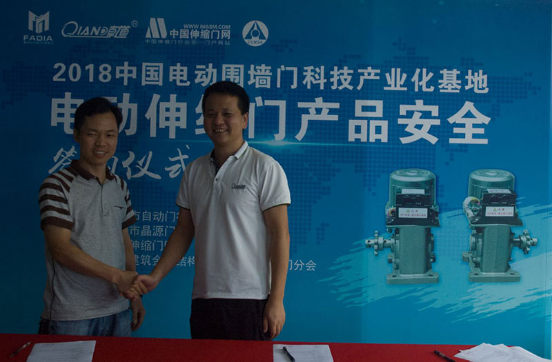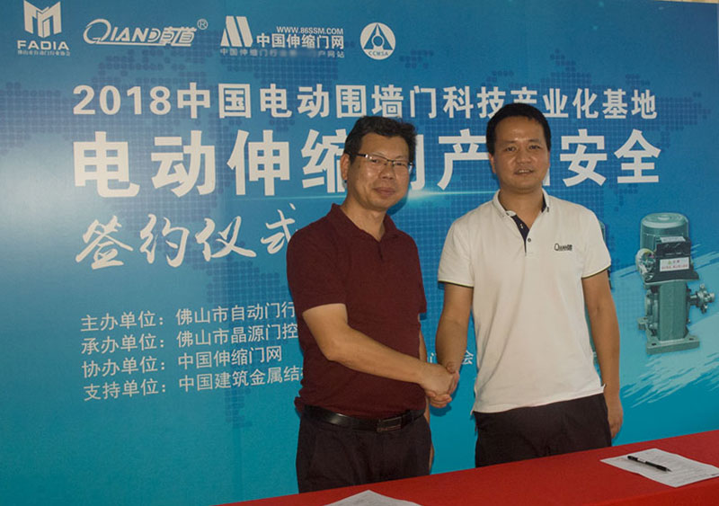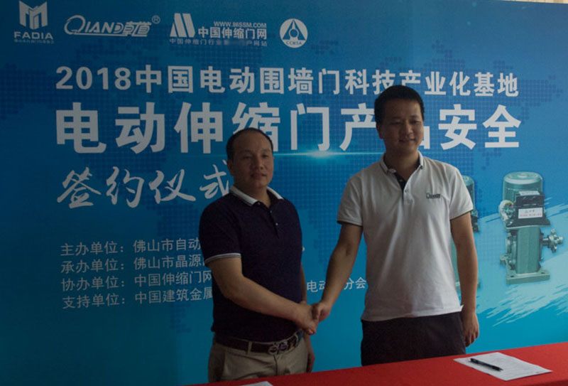 8月9日上午,為推動“佛山電動圍墻門科技產(chǎn)業(yè)基地”科技化水平,引導(dǎo)電動門行業(yè)轉(zhuǎn)型升級,提升企業(yè)產(chǎn)品的安全標(biāo)準(zhǔn),“電動門安全承諾與簽約”活動在晶源公司隆重舉行,建星、金鴻星、金嘉豪、英龍、勇創(chuàng)、金長紅、泰富締盟等伸縮門廠家參加了簽約儀式。本次活動由佛山市自動門行業(yè)協(xié)會主辦,佛山市晶源門控有限公司承辦,中國伸縮門網(wǎng)和中出網(wǎng)協(xié)辦,中國建筑金屬結(jié)構(gòu)協(xié)會自動門電動門分會作為活動的支持單位給予了積極的指導(dǎo)和支持。