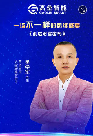 亮點一:營銷大咖分享《財富創(chuàng)造密碼》 活動將邀請到大家居建材行業(yè)營銷導師吳學軍先生親臨現(xiàn)場,帶來一場不一樣的思維盛宴《財富創(chuàng)造密碼》。