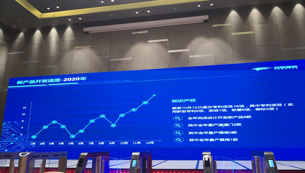 發(fā)布會(huì)上,嚴(yán)總詳細(xì)介紹了創(chuàng)騰近兩年的創(chuàng)新成果。2019年,創(chuàng)騰提交專(zhuān)利項(xiàng)目26項(xiàng),全年完成設(shè)計(jì)開(kāi)發(fā)新產(chǎn)品13款,其中全年量產(chǎn)速通門(mén)5款、量產(chǎn)擺閘2款、完成速通門(mén)整機(jī)檢測(cè)報(bào)告2項(xiàng)、完成機(jī)芯檢測(cè)報(bào)告1項(xiàng)。2020年前10個(gè)月,創(chuàng)騰提交專(zhuān)利項(xiàng)目16項(xiàng),完成設(shè)計(jì)開(kāi)發(fā)新產(chǎn)品8款、量產(chǎn)速通門(mén)2款、量產(chǎn)擺閘3款、量產(chǎn)翼閘1款。