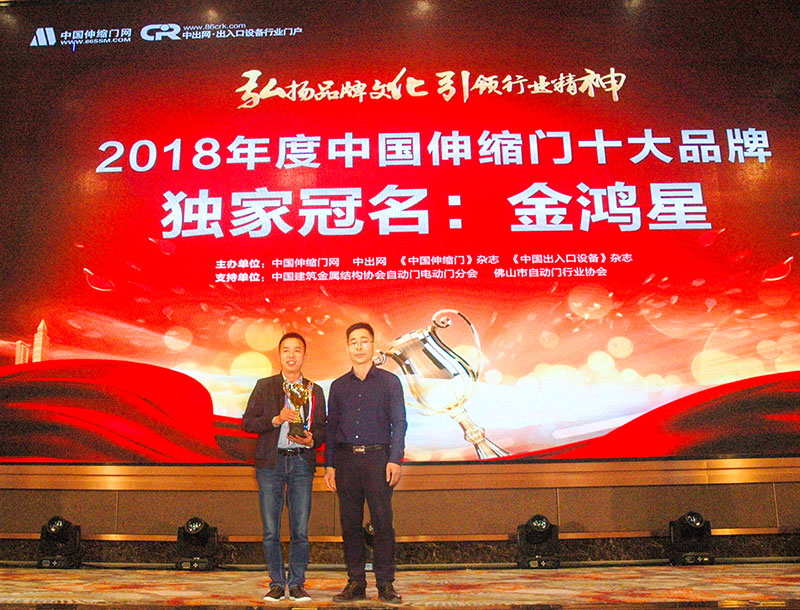 獲得2018年伸縮門十大品牌、創(chuàng)新品牌有:紅門、建星、金鴻星、榮高、圣田、金嘉豪、鼎新、勇創(chuàng)、金長紅、英龍、鷹勝煌、華龍鼎 。