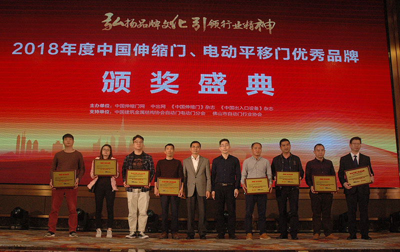獲得2018年中國伸縮門成長品牌,優(yōu)秀品牌有鴻鵠志遠(yuǎn)、富貴龍、廣福、英鵬九州、天下人、創(chuàng)輝煌、翔治;獲得2018年中國電動平移門優(yōu)秀品牌有金長紅、萊歐、新門、泰富締盟。