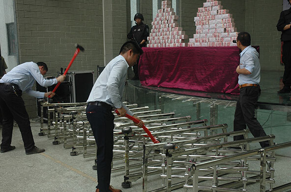 發(fā)布會(huì)現(xiàn)當(dāng)場(chǎng)砸掉劣質(zhì)產(chǎn)品
