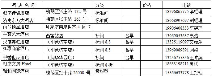備 注:4、5、6月份是濟南旅游旺季,參展商請?zhí)崆邦A定房間;也可以通過攜程網直接預訂
