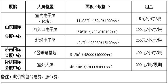 山東國際會展中心商業(yè)運營有限公司服務部收費標準
