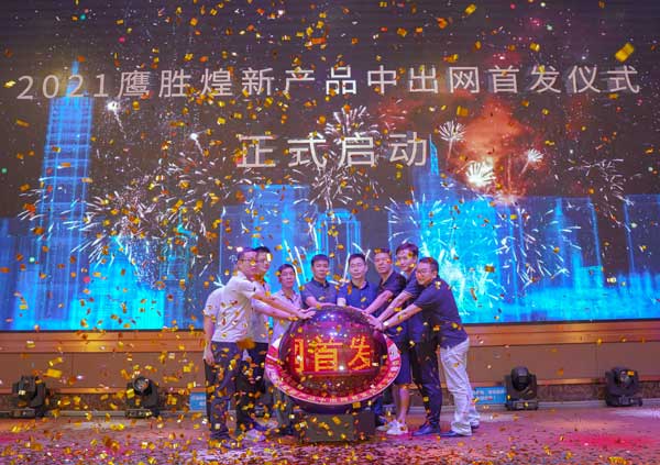鷹勝煌研發(fā)團(tuán)隊(duì)和中出網(wǎng)團(tuán)隊(duì)一起登臺共同點(diǎn)亮啟動球,在激昂的音樂和清脆的禮炮聲中,2021鷹勝煌新產(chǎn)品中出網(wǎng)首發(fā)成功。此次鷹勝煌在中出網(wǎng)首發(fā)的產(chǎn)品包括鴻運(yùn)勝世和勝世雄鷹,格美三大系列。