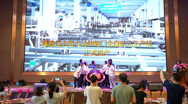 在掌聲、歡呼聲禮炮聲的中,鷹勝煌技術(shù)團(tuán)隊(duì)上場正式啟動生產(chǎn)線,霎時(shí)間,現(xiàn)場大屏幕出現(xiàn)了大型電動伸縮門全自動化生產(chǎn)線繁忙生產(chǎn)的畫面,贏得大家的贊嘆。