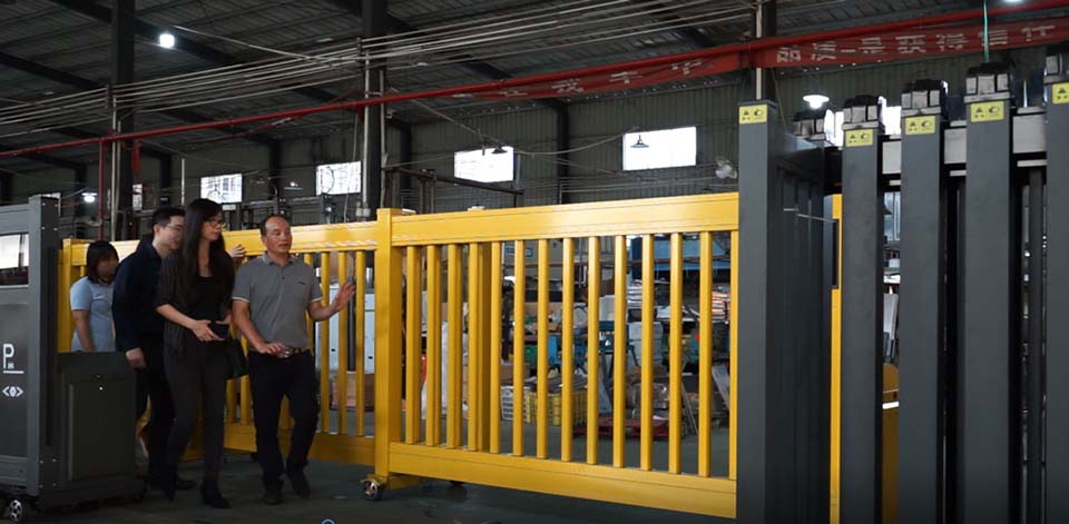 探訪團(tuán)一行來(lái)到勇創(chuàng)科技生產(chǎn)中心,仔細(xì)觀察電動(dòng)門等產(chǎn)品的材質(zhì)、厚度和外觀,并觀看了工人的制作流程。一段黃色的電動(dòng)平移門引起了探訪團(tuán)的注意,不同于以往我們認(rèn)識(shí)的灰白黑,這款電動(dòng)平移門以靚麗的黃色烤漆而成,謝總說(shuō),從工藝技術(shù)來(lái)說(shuō),黃色烤漆需要更高的溫度,調(diào)色很考究,非常適合用在活潑的校園環(huán)境。