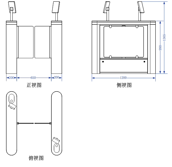 (1)通行方向指示:安裝在機箱頂部刷卡板附近,指示閘機的合法通行方向。