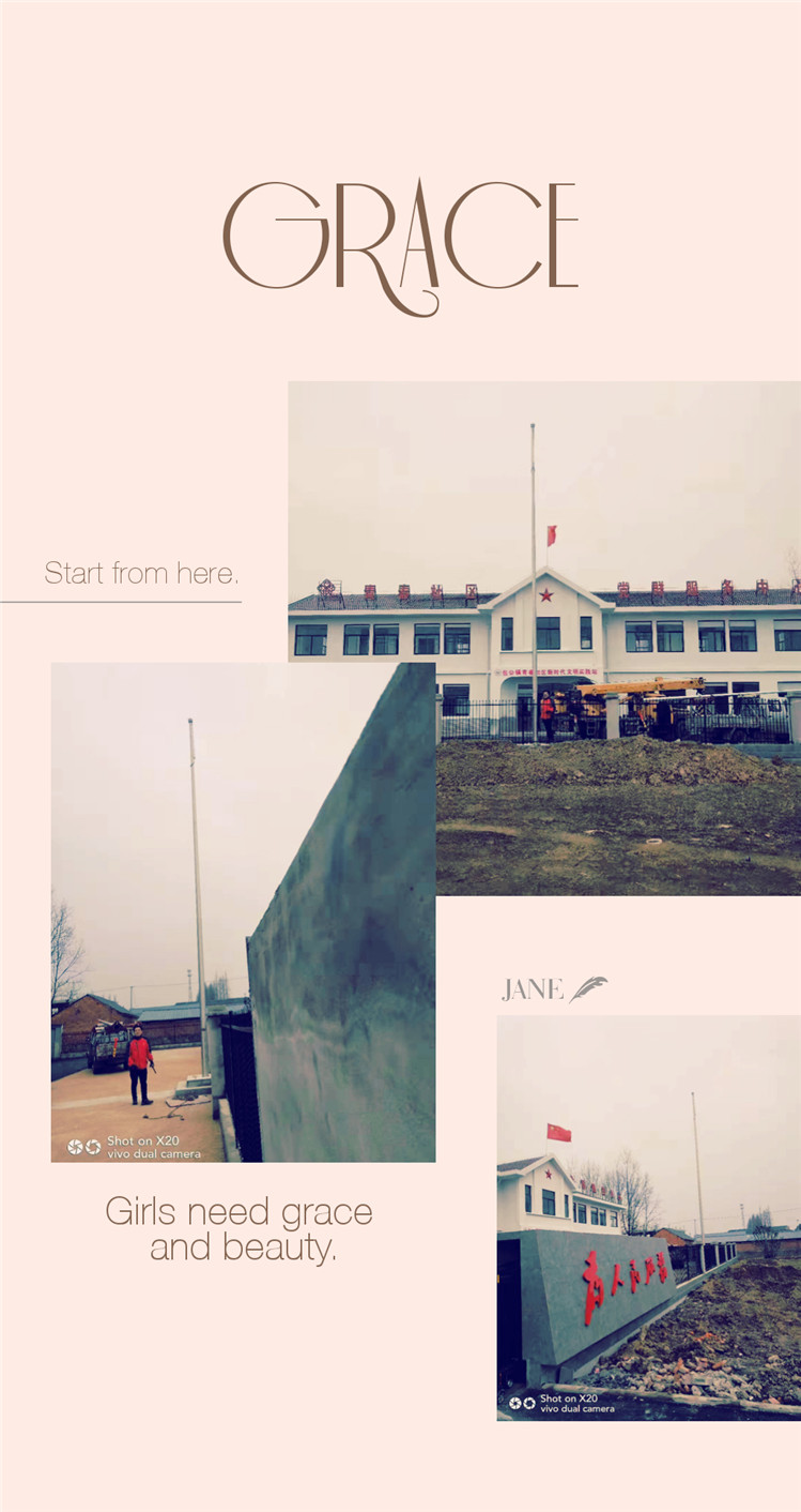 廠家主要生產(chǎn)的不銹鋼旗桿、酒店旗桿、錐形旗桿、水平旗桿、電動旗桿,通過采用SUS304、SUS316、SUS201優(yōu)質(zhì)不銹鋼制作,旗頭可360度順風(fēng)自由旋轉(zhuǎn),這樣避免了國旗纏繞在旗桿上。不銹鋼繩內(nèi)藏于旗桿內(nèi),旗桿外無旗繩,這樣避免旗繩纏繞在旗桿上。錐形旗桿和三節(jié)旗桿有內(nèi)置旗桿,外置旗桿,風(fēng)動旗桿。主要用于公司、酒店、政府、部隊、廣場、體育館,學(xué)校等單位。
