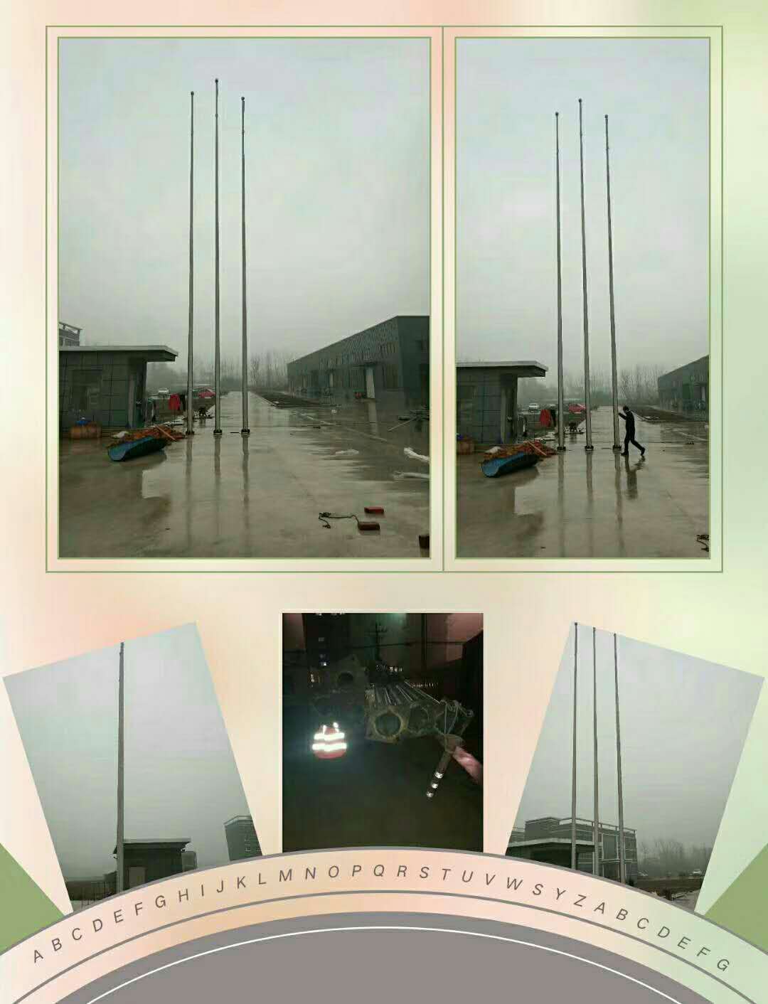 本公司是一家集研發(fā)、設計、生產(chǎn)、銷售及服務于一體的大型旗桿專業(yè)生產(chǎn)企業(yè)。銷售網(wǎng)絡遍布全國及世界各地。其主要產(chǎn)品包括不銹鋼旗桿、風動旗桿、電動旗桿、水平旗桿、奏國歌旗桿、軍旗旗桿、道路旗桿等一系列產(chǎn)品。公司質(zhì)量方針:精心設計求完美,精確制造保質(zhì)量,精誠服務贏信譽。為了打造高品質(zhì)的產(chǎn)品,我們擁有專業(yè)的技術人才,并從國外引進先進的高科技生產(chǎn)設備。以滿足更多客戶對產(chǎn)品的需要。