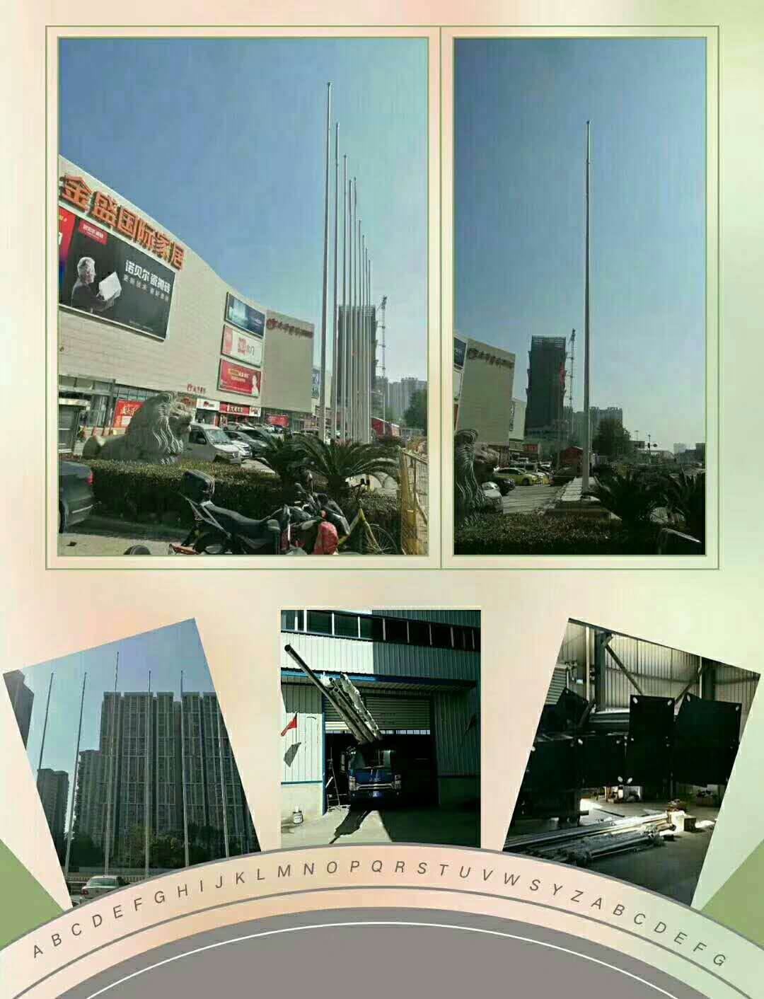本公司是一家外貿(mào)內(nèi)銷兼營的旗幟、旗桿、不銹鋼制品、銅門、崗?fù)?、道閘、鋼結(jié)構(gòu)、膜結(jié)構(gòu)、燈桿生產(chǎn)企業(yè)。自成立以來,一直致力于優(yōu)質(zhì)工藝品的開發(fā)、生產(chǎn)和銷售。已經(jīng)發(fā)展為同行業(yè)翹楚,深得廣大客戶的支持.本著“以優(yōu)質(zhì)取勝、以優(yōu)價取心、誠信開拓未來”的企業(yè)宗旨。主要產(chǎn)品有旗桿、不銹鋼旗桿、玻璃纖維旗桿、錐形旗桿、電動音樂旗桿、風(fēng)動旗桿、避雷針、不銹鋼隱形井蓋、不銹鋼工程,世界各國國旗、企業(yè)旗幟定做、標(biāo)志旗幟、羽毛旗幟、戶外旗幟、燈桿旗幟、注水旗桿、斜插墻旗幟旗桿、禮堂旗幟旗桿、落地旗桿、漢白玉旗臺、漢白玉欄桿,各種銅門、銅欄桿、銅樓梯、銅藝術(shù)品,各種燈桿、不銹鋼燈桿、太陽能燈桿、照明燈桿、監(jiān)控桿等,優(yōu)質(zhì)崗?fù)ぃ瑘?zhí)勤崗?fù)?、收費(fèi)崗?fù)?、交通崗?fù)?,停車收費(fèi)崗?fù)?,崗?fù)さ篱l電動門一體設(shè)計(jì)安裝。同時可根據(jù)客戶要求來樣加工定做。龍旗產(chǎn)品廣泛用于政府、學(xué)校、大型企業(yè)、會展、廣場、醫(yī)院、酒店、體育場館等!公司率先引進(jìn)國外**工業(yè)管焊機(jī),全自動拋光體系,聯(lián)動大噸電位壓機(jī),全電腦剪裁,微電腦控制技術(shù),激光切割不銹鋼卷材平直機(jī)等先進(jìn)生產(chǎn)設(shè)備及生產(chǎn)技術(shù)。生產(chǎn)產(chǎn)品主要面向體育館、廣場、酒店、各大4S店、會展中心、學(xué)校、政府機(jī)關(guān)、部隊(duì)等場所,憑借其非凡的品質(zhì)和優(yōu)質(zhì)的服務(wù)已贏得了廣大需求者的信賴和好評。龍旗具有先進(jìn)的制作設(shè)備,技藝精湛的設(shè)計(jì)制造工程師、專業(yè)銷售團(tuán)段以及經(jīng)驗(yàn)豐富的施工安裝隊(duì)伍,我們立志于做**的旗桿,為客戶提供**質(zhì)的服務(wù)!